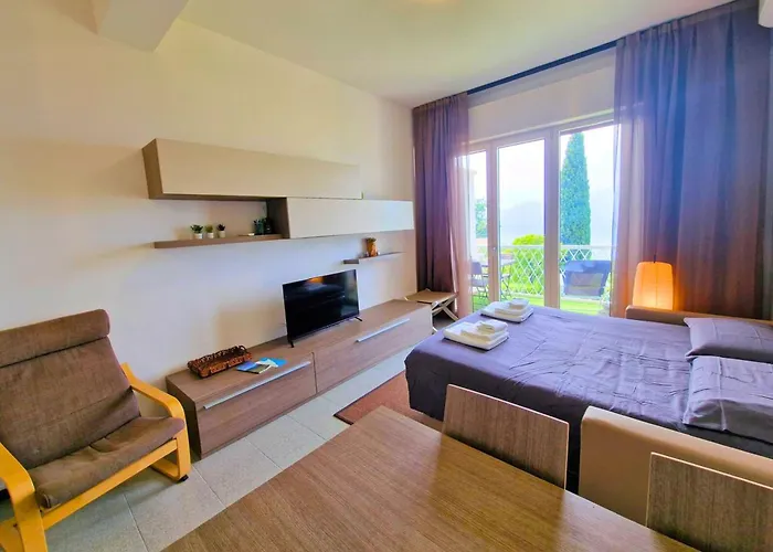 The 1-room Charme On The Lake - Dimora Spighetta San Zeno di Montagna apartment is located approximately 25 minutes' walk from the Scaliger Castle of Torri del Benaco and offers Wi-Fi for either business or leisure.